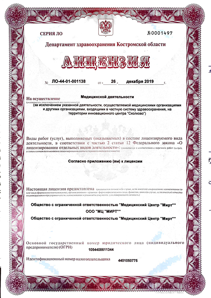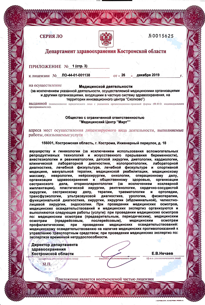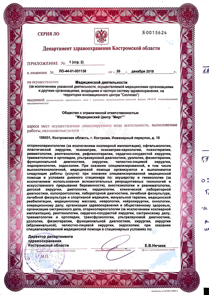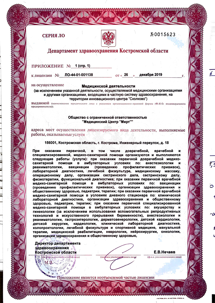 Диапазоны цен на приём врачей и специалистов, услуги и диагностику в медицинском центре Мирт на Инженерном в Костроме.
